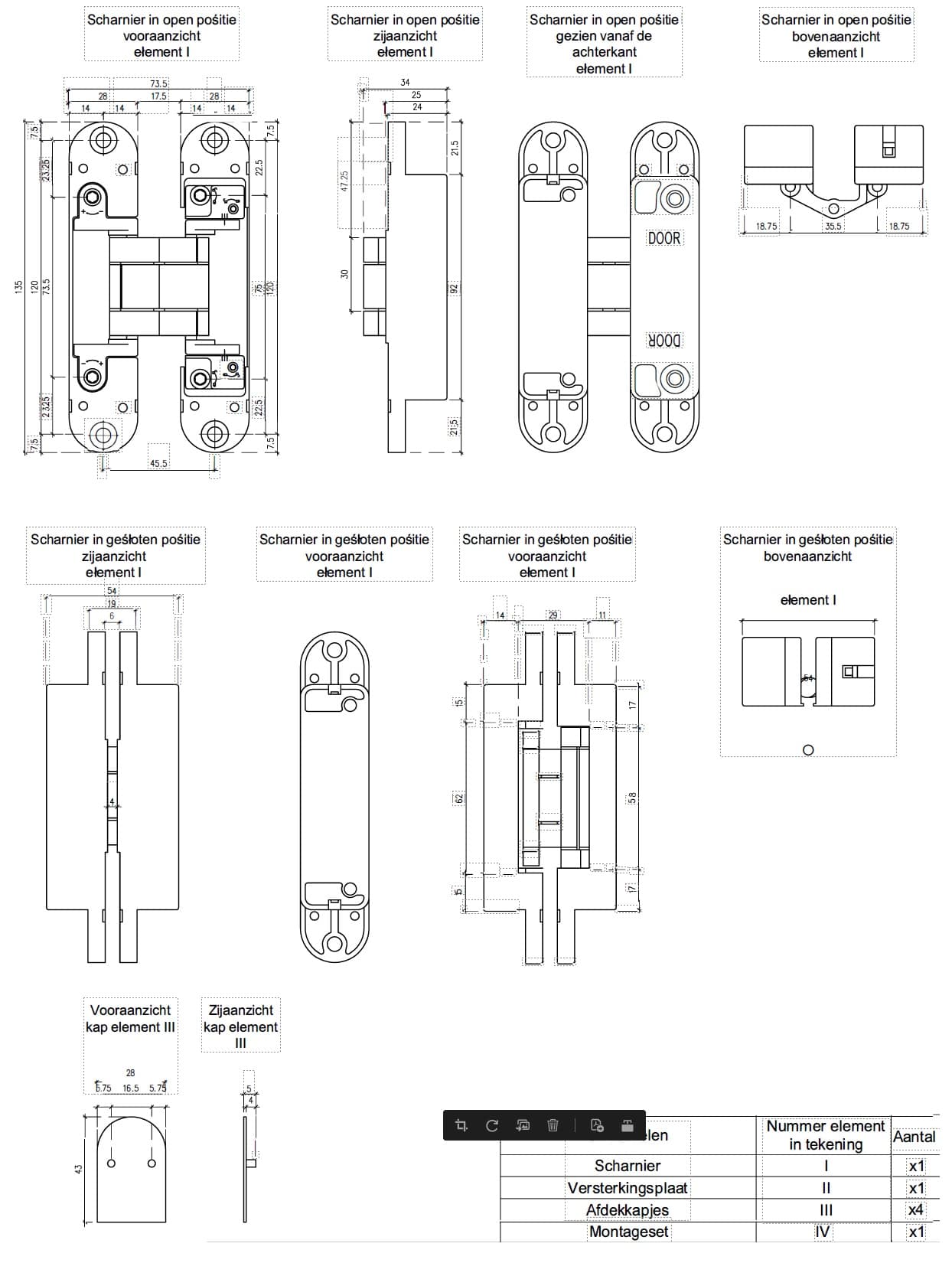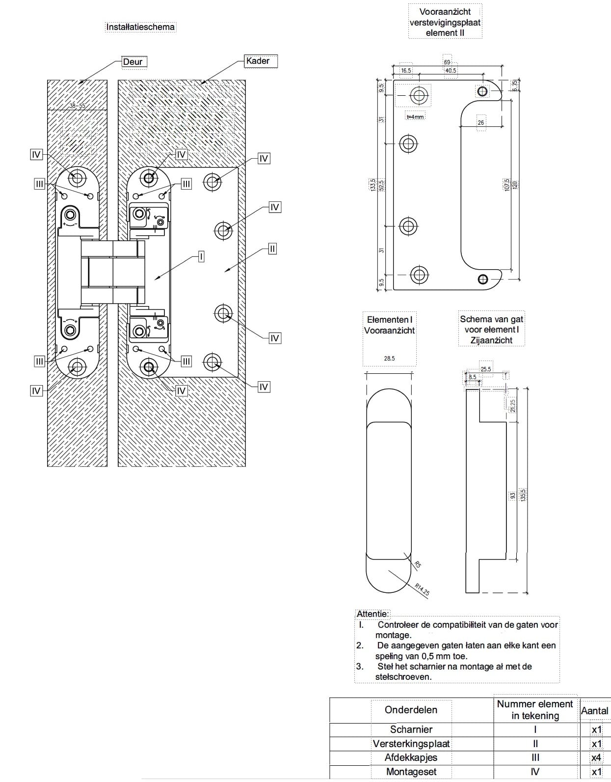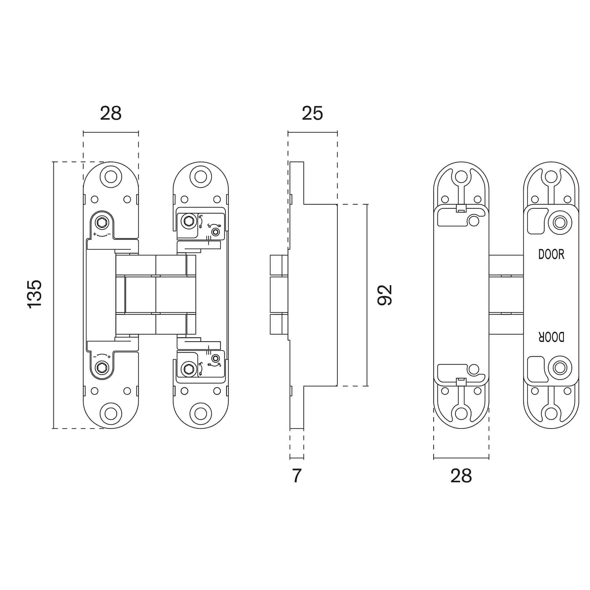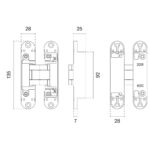 Deze mat chrome 3D scharnieren hebben een afmeting van 135x28mm en zijn geschikt voor binnendeuren met een deurdikte van 38 tot 55 mm. Ze kunnen een gewicht aan van 60 kg (bij gebruik van 2 scharnieren) en zijn afstelbaar in 3 richtingen (links/rechts, boven/onder en voor/achter). De 3D scharnieren worden geleverd met 4 plastic afdekkapjes in mat chrome afwerking en 4 schroeven (5x30mm). Voor een nog stevigere bevestiging kan je gebruik maken van een verstevigingsplaat (zie gerelateerde producten).
