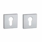 Deze mat Chrome cilinderplaatjes horen bij de rechthoekige deurklinken uit de Prestige & Premium collectie van Aprile. (Ismena RT, Pina RT, Yuka RT, Carlina, Brisa, Gladiola, Lupina & Plumeria). Doordat de rozetten de cilinder moet kunnen bedekken zijn deze cilinderrozetten vierkant van vorm. De rechthoekige cilinderrozetten van 50×50 mm hebben een dikte van 7 mm en zijn voorzien van nokken waardoor ze beter blijven zitten. Deze mat Chrome cilinderrozetten zijn geschikt voor binnendeuren met een deurdikte tot 44 mm en worden per paar geleverd inclusief metalen onderrozetten en bevestigingsmaterialen. Voor dikkere deuren kunnen we langere bevestigingsmaterialen meeleveren.
