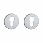 Mat Chrome cilinderplaatjes uit de Comfort collectie van Aprile. Deze cilinderrozetten staan op ronde rozetten van Ø53 mm met een dikte van 7 mm en zijn voorzien van nokken waardoor ze beter blijven zitten. Deze Aprile cilinderrozetten zijn geschikt voor binnendeuren met een deurdikte tot 44 mm en worden per paar geleverd inclusief metalen onderrozetten en bevestigingsmaterialen. Voor bredere deuren kunnen we langere bevestigingsmaterialen meeleveren.