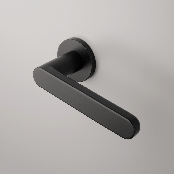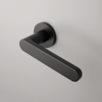Massieve deurklinken ‘Alora’ in mat zwart uit de Premium collectie van Aprile. Deze mat zwarte deurklinken staan op ronde rozetten van Ø 52 mm met een dikte van 7 mm en worden per paar geleverd inclusief kunststof onderrozetten, vierkantstift 8×8 mm en bevestigingsmaterialen.