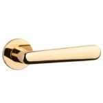 Deze massieve goud gepolijste deurklinken ‘Aria’ behoren tot de Prestige collectie van Aprile. Deze deurklinken staan op ronde rozetten van Ø 52 mm met een dikte van slechts 5 mm. De dunne rozetten geven deze deurklinken een strak en prestigieus uiterlijk waardoor het vanzelfsprekend is dat ze tot de Prestige collectie behoren. De deurklinken worden per paar geleverd inclusief kunststof onderrozetten, vierkantstift 8×8 mm en bevestigingsmaterialen. Deze design deurklinken, geschikt voor binnendeuren met een deurdikte tot 44 mm, zijn geveerd en voorzien van nokken waardoor ze beter blijven zitten. Voor bredere deuren kunnen we langere bevestigingsmaterialen meeleveren.