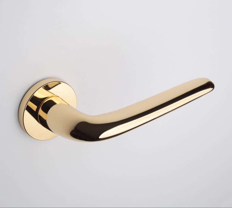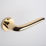 Massieve deurklinken ‘Azalia’ in gepolijst goud uit de Premium collectie van Aprile. Deze gouden deurklinken staan op ronde rozetten van Ø 52 mm met een dikte van 7 mm en worden per paar geleverd inclusief kunststof onderrozetten, vierkantstift 8×8 mm en bevestigingsmaterialen. Deze massieve deurklinken zijn geveerd en voorzien van nokken waardoor ze beter blijven zitten. Deze gouden Aprile deurklinken zijn geschikt voor binnendeuren met een deurdikte tot 44 mm. Voor bredere deuren kunnen we langere bevestigingsmaterialen meeleveren.
