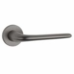 Massieve deurklinken ‘Azalia’ in grafiet uit de Premium collectie van Aprile. Grafiet is een kleur die kort aanleunt bij het antraciet grijs maar minder gevoelig is voor vinger afdrukken. Deze grafieten deurklinken staan op ronde rozetten van Ø 52 mm met een dikte van 7 mm en worden per paar geleverd inclusief kunststof onderrozetten, vierkantstift 8×8 mm en bevestigingsmaterialen. Deze massieve deurklinken zijn geveerd en voorzien van nokken waardoor ze beter blijven zitten. Deze mat grijze Aprile deurklinken zijn geschikt voor binnendeuren met een deurdikte tot 44 mm. Voor bredere deuren kunnen we langere bevestigingsmaterialen meeleveren.