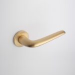 Massieve deurklinken ‘Azalia’ in mat goud uit de Premium collectie van Aprile. Deze mat gouden deurklinken staan op ronde rozetten van Ø 52 mm met een dikte van 7 mm en worden per paar geleverd inclusief kunststof onderrozetten, vierkantstift 8×8 mm en bevestigingsmaterialen. Deze massieve deurklinken zijn geveerd en voorzien van nokken waardoor ze beter blijven zitten. Deze mat gouden Aprile deurklinken zijn geschikt voor binnendeuren met een deurdikte tot 44 mm. Voor bredere deuren kunnen we langere bevestigingsmaterialen meeleveren.
