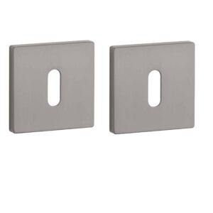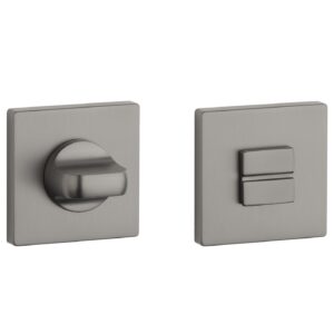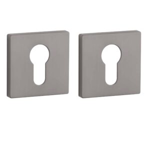 Deze grafieten deurklinken staan op vierkante rozetten van 52×52 mm met een dikte van 7 mm en worden per paar geleverd inclusief kunststof onderrozetten, vierkantstift 8×8 mm en bevestigingsmaterialen.