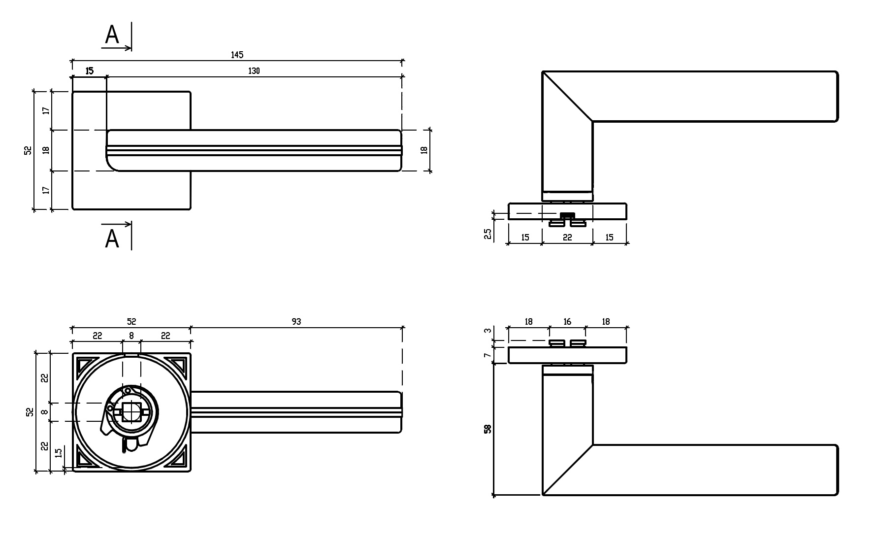 De set is geschikt voor binnendeuren tot 44 mm en wordt per paar geleverd met 7 mm slim rozet, 8×8 mm vierkantstift en alle montagematerialen. Voor dikkere deuren zijn langere bevestigingen optioneel beschikbaar.