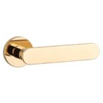 Massieve deurklinken ‘DEGLASIA’ in gepolijst goud uit de Premium collectie van Aprile. Deze gouden deurklinken met elegante afgeronde vormen staan op ronde rozetten van Ø 52 mm met een dikte van 7 mm en worden per paar geleverd inclusief kunststof onderrozetten, vierkantstift 8×8 mm en bevestigingsmaterialen. Deze massieve deurklinken zijn geveerd en voorzien van nokken waardoor ze beter blijven zitten. Deze gouden Aprile deurklinken zijn geschikt voor binnendeuren met een deurdikte tot 44 mm. Voor bredere deuren kunnen we langere bevestigingsmaterialen meeleveren.