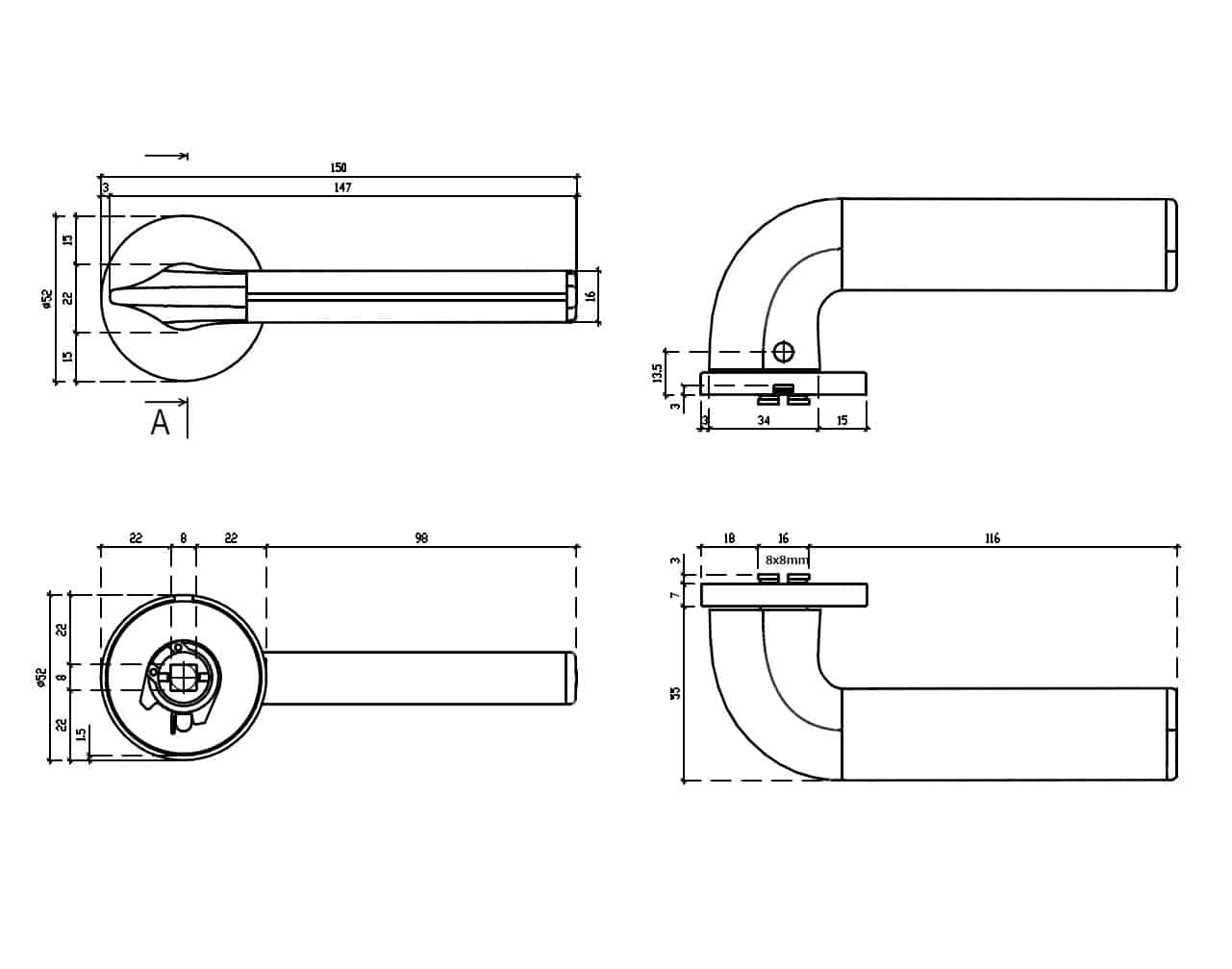 • inclusief tweedelige vierkantstift 8×8 mm, patentvijzen en schroeven