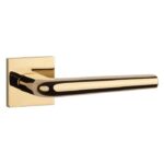 Massieve deurklinken ‘Funkia’ uit de Comfort collectie van Aprile. Deze Aprile deurklinken zijn zowel leverbaar met vierkante rozetten alsook ronde rozetten. Deze deurklinken hebben als basis Zamak waarna ze zijn voorzien van een goud gepolijste PVD coating. Deze geveerde deurklinken staan op vierkant rozetten van 53×53 mm met een dikte van 7 mm en worden per paar geleverd inclusief metalen onderrozetten, vierkantstift 8×8 mm en bevestigingsmaterialen. Doordat de metalen onderrozetten voorzien zijn van nokken hebben ze meer stevigheid en blijven ze beter zitten . Deze massieve Aprile deurklinken zijn geschikt voor binnendeuren met een deurdikte tot 44 mm. Voor bredere deuren kunnen we langere bevestigingsmaterialen meeleveren.