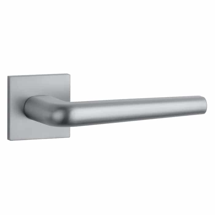 Massieve deurklinken ‘Funkia’ uit de Comfort collectie van Aprile. Deze Aprile deurklinken zijn zowel leverbaar met vierkante rozetten alsook ronde rozetten. Deze deurklinken hebben als basis Zamak waarna ze zijn geanodiseerd in mat Chroom. Door dit elektrochemisch proces krijg je een zeer mooie en kwalitatieve kleurvastheid en staat de kwaliteit van de kleur garant voor jarenlang plezier. Deze deurklinken staan op vierkant rozetten van 53×53 mm met een dikte van 7 mm en worden per paar geleverd inclusief metalen onderrozetten, vierkantstift 8×8 mm en bevestigingsmaterialen. Deze massieve deurklinken zijn geveerd en voorzien van nokken waardoor ze beter blijven zitten. Deze massieve Aprile deurklinken zijn geschikt voor binnendeuren met een deurdikte tot 44mm. Voor bredere deuren kunnen we langere bevestigingsmaterialen meeleveren.