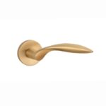 Massieve deurklinken ‘Gerbera’ in mat goud uit de Premium collectie van Aprile. Deze mat gouden deurklinken staan op ronde rozetten van Ø 52 mm met een dikte van 7 mm en worden per paar geleverd inclusief kunststof onderrozetten, vierkantstift 8×8 mm en bevestigingsmaterialen. Deze massieve deurklinken zijn geveerd en voorzien van nokken waardoor ze beter blijven zitten. Deze mat gouden Aprile deurklinken zijn geschikt voor binnendeuren met een deurdikte tot 44 mm. Voor bredere deuren kunnen we langere bevestigingsmaterialen meeleveren.