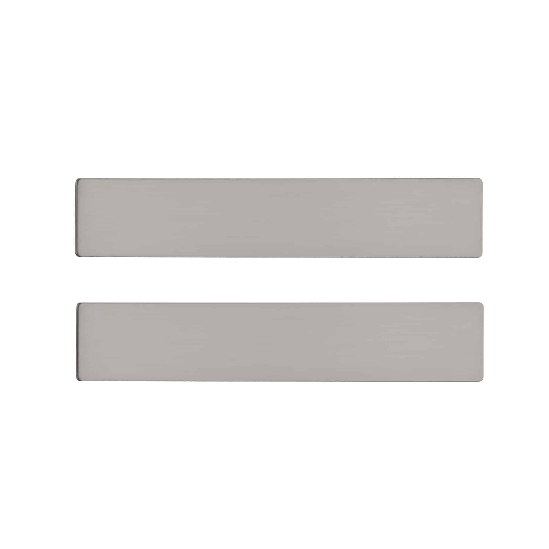 Deze massieve zwarte deurklinken ‘Hedera’ behoren tot de Prestige collectie van Aprile en zijn echte blikvangers. De mat zwarte design deurklinken staan op rechthoekige rozetten van 39x34x2,5mm welke gelijk lopen met de deurklinken. Hierdoor lijkt het dat de onderrozetten verborgen of onzichtbaar zijn. Door een magnetische toepassing zijn de voorplaten eenvoudig te verwisselen. Maak rechts bovenaan de keuze die het best bij jou interieur past. Ook kan je dit model zonder voorplaten bestellen waardoor je zelf kan combineren met witte voorplaten of met leer ingelegde voorplaten. Je kan ze zelfs met blanco voorplaten bestellen waardoor je zelf iets leuks erop kan zetten zoals bijvoorbeeld de namen van je kinderen, logo van je bedrijf, … Opvallend bij dit model is de WC versie waarbij het draaiknopje verwerkt is in de deurklink. Je hebt hiervoor dus geen extra WC garnituur nodig. Dit artikel wordt per paar geleverd met zwarte voorplaten aan beide zijden inclusief metalen onderrozetten, tweedelige vierkantstift 8×8 mm en bevestigingsmaterialen voor deuren van 40 tot 45 mm (indien bredere deuren gelieve de juiste deurdikte bij opmerkingen te vermelden zodat we passende montagematerialen kunnen mee leveren). Deze design deurklinken zijn geveerd en voorzien van nokken waardoor ze beter blijven zitten.
