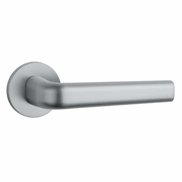 Massieve deurklinken ‘Inula’ in mat Chroom uit de Comfort collectie van Aprile . Deze Aprile deurklinken hebben als basis massief Zamak waarna ze zijn geanodiseerd in mat Chroom. Door dit elektrochemisch proces krijg je een zeer mooie en kwalitatieve kleurvastheid en staat de kwaliteit van de kleur garant voor jarenlang plezier. Deze deurklinken staan op ronde rozetten van Ø 53 mm met een dikte van 7 mm en worden per paar geleverd inclusief metalen onderrozetten, vierkantstift 8×8 mm en bevestigingsmaterialen. Deze massieve deurklinken zijn geveerd en voorzien van nokken waardoor ze beter blijven zitten. Deze massieve Aprile deurklinken zijn geschikt voor binnendeuren met een deurdikte tot 44 mm. Voor bredere deuren kunnen we langere bevestigingsmaterialen meeleveren.