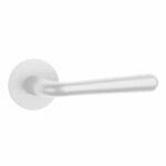 Massieve deurklinken ‘Irga’ in mat wit uit de Comfort collectie van Aprile . Deze Aprile deurklinken hebben als basis massief Zamak waarna ze zijn voorzien van een witte poedercoating. Deze witte deurklinken staan op ronde rozetten van Ø 53 mm met een dikte van 7 mm en worden per paar geleverd inclusief metalen onderrozetten, vierkantstift 8×8 mm en bevestigingsmaterialen. Deze massieve deurklinken zijn geveerd en voorzien van nokken waardoor ze beter blijven zitten. Deze massieve Aprile deurklinken zijn geschikt voor binnendeuren met een deurdikte tot 44 mm. Voor bredere deuren kunnen we langere bevestigingsmaterialen meeleveren.