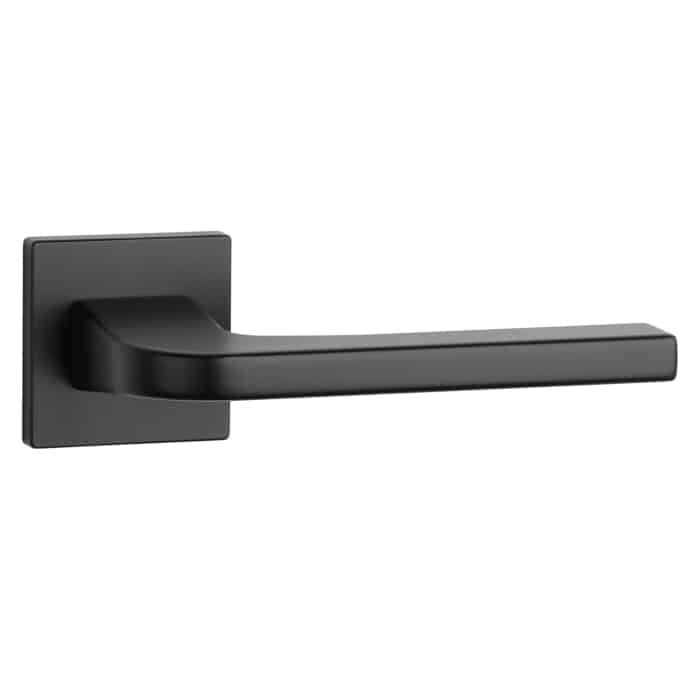 Massieve deurklinken ‘Ismena’ in mat zwarte uitvoering uit de Premium collectie van Aprile. Deze zwarte deurklinken staan op vierkant rozetten van 52×52 mm met een dikte van 7 mm en worden per paar geleverd inclusief kunststof onderrozetten, vierkantstift 8×8 mm en bevestigingsmaterialen. Deze massieve deurklinken zijn geveerd en voorzien van nokken waardoor ze beter blijven zitten. Deze zwarte Aprile deurklinken zijn geschikt voor binnendeuren met een deurdikte tot 44 mm. Voor bredere deuren kunnen we langere bevestigingsmaterialen meeleveren.