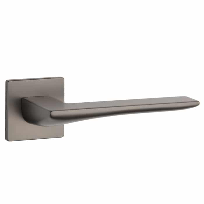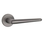 Massieve deurklinken ‘LAVANDA’ in grafiet uit de Premium collectie van Aprile. Grafiet is een kleur die kort aanleunt bij het antraciet grijs maar minder gevoelig is voor vinger afdrukken. Deze grafieten deurklinken, op ronde rozetten van Ø 52 mm met een dikte van 7 mm, worden per paar geleverd inclusief kunststof onderrozetten, vierkantstift 8×8 mm en bevestigingsmaterialen. De afwerking met een geanodiseerde grafieten coating staat garant voor een jaren lange kleurvastheid. Dit ontwerp van Maria Jeglinska-Adamczewska en Robert Kwiecień staalt dan ook een universele schoonheid uit en voldoet aan de behoeften van de klanten. De massieve deurklinken zijn geveerd en voorzien van nokken waardoor ze beter blijven zitten. Deze antraciet grijze Aprile deurklinken zijn geschikt voor binnendeuren met een deurdikte tot 44 mm. Voor bredere deuren kunnen we langere bevestigingsmaterialen meeleveren.