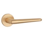 Massieve deurklinken ‘LAVANDA’ in mat goud uit de Premium collectie van Aprile. Deze mat gouden deurklinken, op ronde rozetten van Ø 52 mm met een dikte van 7 mm, worden per paar geleverd inclusief kunststof onderrozetten, vierkantstift 8×8 mm en bevestigingsmaterialen. De afwerking met een geanodiseerde mat gouden coating staat garant voor een jaren lange kleurvastheid. Dit ontwerp van Maria Jeglinska-Adamczewska en Robert Kwiecień staalt dan ook een universele schoonheid uit en voldoet aan de behoeften van de klanten. De massieve deurklinken zijn geveerd en voorzien van nokken waardoor ze beter blijven zitten. Deze mat gouden Aprile deurklinken zijn geschikt voor binnendeuren met een deurdikte tot 44 mm. Voor bredere deuren kunnen we langere bevestigingsmaterialen meeleveren.