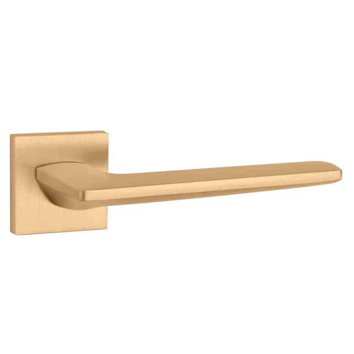 Massieve deurklinken ‘Lunaria’ in mat goud uit de Premium collectie van Aprile. Deze mat gouden deurklinken staan op vierkant rozetten van 52×52 mm met een dikte van 7 mm en worden per paar geleverd inclusief kunststof onderrozetten, vierkantstift 8×8 mm en bevestigingsmaterialen. Deze massieve deurklinken zijn geveerd en voorzien van nokken waardoor ze beter blijven zitten. Deze mat gouden Aprile deurklinken zijn geschikt voor binnendeuren met een deurdikte tot 44 mm. Voor bredere deuren kunnen we langere bevestigingsmaterialen meeleveren.