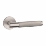 Deze massieve nikkelen deurklinken ‘Molinia’ behoren tot de Comfort collectie van Aprile. De massieve zamak deurklinken staan op ronde rozetten van Ø 53 mm met een dikte van 7 mm en zijn mat nikkel geanodiseerd. De handgrepen hebben een kruislings geslepen patroon waardoor deze deurklinken echte eyecatchers zijn. De mat nikkelen deurklinken worden per paar geleverd inclusief metalen onderrozetten, vierkantstift 8×8 mm en bevestigingsmaterialen. Deze mat nikkelen deurklinken met een prachtig design zijn geschikt voor binnendeuren met een deurdikte tot 44 mm. De rozetten, voorzien van nokken waardoor ze beter blijven zitten, zijn geveerd en uit één geheel wat zorgt voor een strakke look. Voor bredere deuren kunnen we langere bevestigingsmaterialen meeleveren.