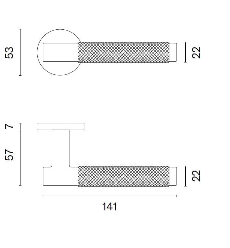 Deze massieve titanium deurklinken ‘Molinia’ behoren tot de Comfort collectie van Aprile. De massieve zamak deurklinken staan op ronde rozetten van Ø 53 mm met een dikte van 7 mm en zijn geanodiseerd in titanium. De handgrepen hebben een kruislings geslepen patroon waardoor deze deurklinken echte eyecatchers zijn. De titanium grijze deurklinken worden per paar geleverd inclusief metalen onderrozetten, vierkantstift 8×8 mm en bevestigingsmaterialen. Deze titanium deurklinken met een prachtig design zijn geschikt voor binnendeuren met een deurdikte tot 44 mm. De rozetten, voorzien van nokken waardoor ze beter blijven zitten, zijn geveerd en uit één geheel wat zorgt voor een strakke look. Voor bredere deuren kunnen we langere bevestigingsmaterialen meeleveren.