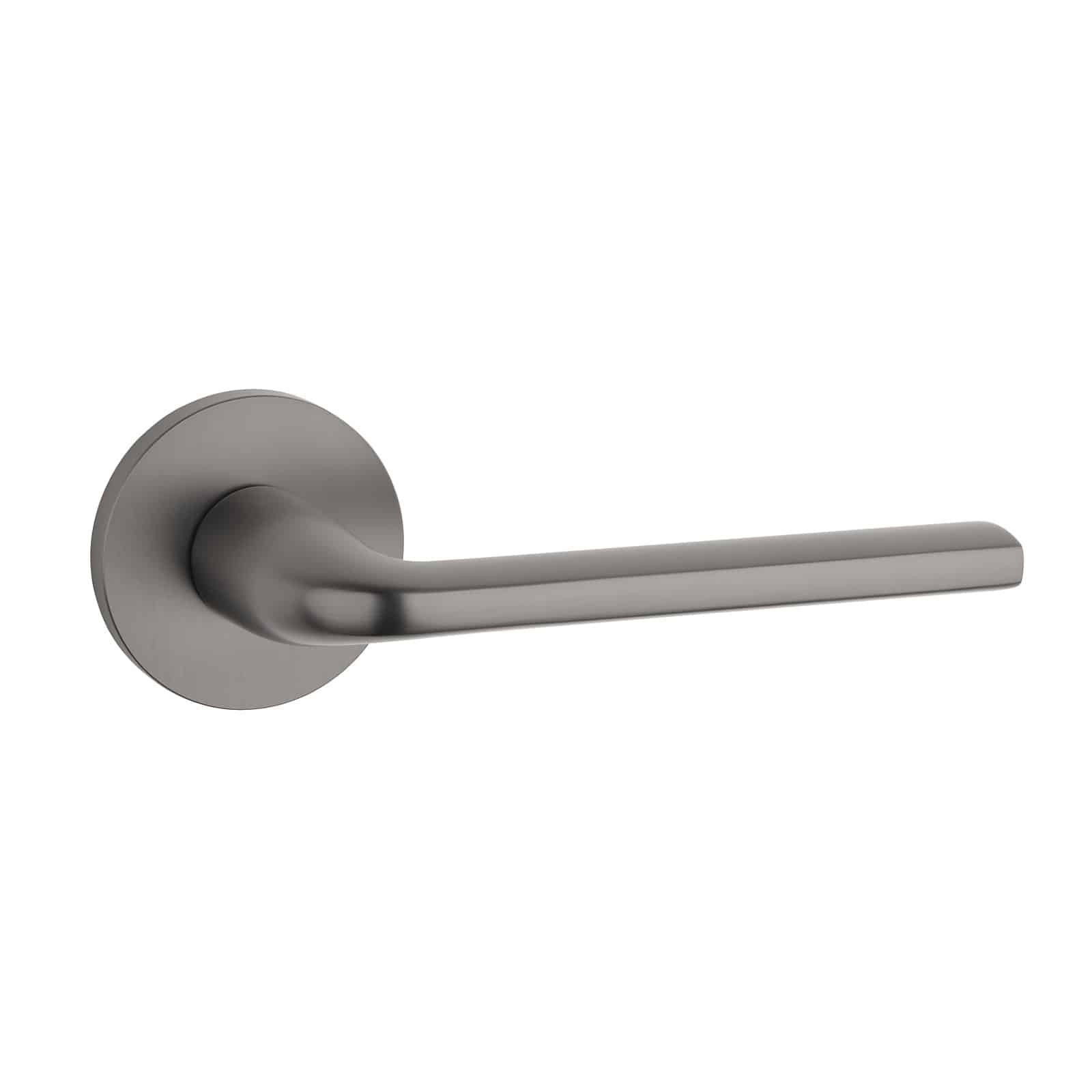 Massieve deurklinken ‘Oleandro’ in titanium uit de Comfort collectie van Aprile . Deze Aprile deurklinken hebben als basis massief Zamak waarna ze zijn geanodiseerd in titanium grijs. Door dit elektrochemisch proces krijg je een zeer mooie en kwalitatieve kleurvastheid en staat de kwaliteit van de kleur garant voor jarenlang plezier. Deze deurklinken staan op ronde rozetten van Ø 53 mm met een dikte van 7 mm en worden per paar geleverd inclusief metalen onderrozetten, vierkantstift 8×8 mm en bevestigingsmaterialen. Deze massieve deurklinken zijn geveerd en voorzien van nokken waardoor ze beter blijven zitten. De massieve Aprile deurklinken zijn geschikt voor binnendeuren met een deurdikte tot 44 mm. Voor bredere deuren kunnen we langere bevestigingsmaterialen meeleveren.