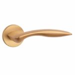 Massieve deurklinken ‘Robinia’ in mat goud uit de Premium collectie van Aprile. Deze mat gouden deurklinken staan op ronde rozetten van Ø 52 mm met een dikte van 7 mm en worden per paar geleverd inclusief kunststof onderrozetten, vierkantstift 8×8 mm en bevestigingsmaterialen. Deze massieve deurklinken zijn geveerd en voorzien van nokken waardoor ze beter blijven zitten. Deze mat gouden Aprile deurklinken zijn geschikt voor binnendeuren met een deurdikte tot 44 mm. Voor bredere deuren kunnen we langere bevestigingsmaterialen meeleveren.