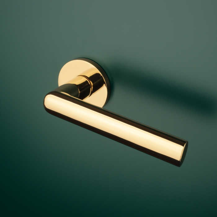 Massieve deurklinken ‘Silena’ uit de Comfort collectie van Aprile. Deze Aprile deurklinken zijn zowel leverbaar met ronde rozetten alsook vierkante rozetten. Deze deurklinken hebben als basis Zamak waarna ze zijn voorzien van een goud gepolijste PVD coating. Deze geveerde deurklinken staan op ronde rozetten van Ø 53 mm met een dikte van 7 mm en worden per paar geleverd inclusief metalen onderrozetten, vierkantstift 8×8 mm en bevestigingsmaterialen. Doordat de metalen onderrozetten voorzien zijn van nokken hebben ze meer stevigheid en blijven ze beter zitten. Deze massieve Aprile deurklinken zijn geschikt voor binnendeuren met een deurdikte tot 44 mm. Voor bredere deuren kunnen we langere bevestigingsmaterialen meeleveren.