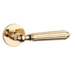 Massieve deurklinken ‘TIARELLA’ in gepolijst goud uit de Premium collectie van Aprile. Deze gouden deurklinken, met een horizontaal motief op de deurgreep, staan op ronde rozetten van Ø 52 mm uit één geheel met een dikte van 7 mm en worden per paar geleverd inclusief kunststof onderrozetten, vierkantstift 8×8 mm en bevestigingsmaterialen. Dit mooie ontwerp heeft een rustieke look en is vervaardigt uit massief messing. Deze massieve messing deurklinken zijn geveerd en voorzien van nokken waardoor ze beter blijven zitten. De glanzend gouden Aprile deurklinken zijn geschikt voor binnendeuren met een deurdikte tot 44 mm. Voor bredere deuren kunnen we langere bevestigingsmaterialen meeleveren.