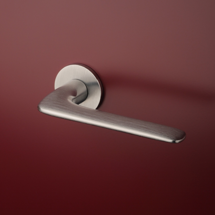 Deze massieve deurklinken ‘Viola’ in geborsteld Chroom behoren tot de Prestige collectie van Aprile. Deze deurklinken staan op ronde rozetten van Ø 52 mm met een dikte van slechts 5 mm. De elegante overgang van de ronde hoek naar de platte greep gecombineerd met het extra dunne rozet geven deze klinken een magnifieke uitstraling waardoor ze zeker in de Prestige collectie thuis horen. De deurklinken worden per paar geleverd inclusief kunststof onderrozetten, vierkantstift 8×8 mm en bevestigingsmaterialen. Deze design deurklinken, geschikt voor binnendeuren met een deurdikte tot 44 mm, zijn geveerd en voorzien van nokken waardoor ze beter blijven zitten. Voor bredere deuren kunnen we langere bevestigingsmaterialen meeleveren.