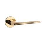 Deze massieve gouden deurklinken ‘Viola’ behoren tot de Prestige collectie van Aprile. Deze gouden design deurklinken staan op ronde rozetten van Ø 52 mm met een dikte van slechts 5 mm en zijn afgewerkt met een goud gepolijste coating. De elegante overgang van de ronde hoek naar de platte greep gecombineerd met het extra dunne rozet geven deze klinken een magnifieke uitstraling waardoor ze zeker in de Prestige collectie thuis horen. De goud gepolijste deurklinken worden per paar geleverd inclusief kunststof onderrozetten, vierkantstift 8×8 mm en bevestigingsmaterialen. Deze gouden design deurklinken, geschikt voor binnendeuren met een deurdikte tot 44 mm, zijn geveerd en voorzien van nokken waardoor ze beter blijven zitten. Voor bredere deuren kunnen we langere bevestigingsmaterialen meeleveren.