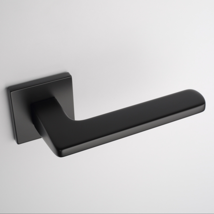 Massieve deurklinken ‘Yuka’ in mat zwarte uitvoering uit de Premium collectie van Aprile. Deze zwarte deurklinken staan op vierkant rozetten van 52×52 mm met een dikte van 7 mm en worden per paar geleverd inclusief kunststof onderrozetten, vierkantstift 8×8 mm en bevestigingsmaterialen. Deze massieve deurklinken zijn geveerd en voorzien van nokken waardoor ze beter blijven zitten. Deze zwarte Aprile deurklinken zijn geschikt voor binnendeuren met een deurdikte tot 44 mm. Voor bredere deuren kunnen we langere bevestigingsmaterialen meeleveren.