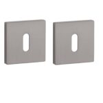 Vierkant sleutelplaatjes uit de Premium collectie van Aprile in grafiet uitvoering. Grafiet leunt aan bij antraciet grijs maar is minder gevoelig voor vingerafdrukken. Deze sleutelrozetten staan op vierkant rozetten van 52×52 mm met een dikte van 7 mm en zijn voorzien van nokken waardoor ze beter blijven zitten. Deze Aprile sleutelrozetten zijn geschikt voor binnendeuren met een deurdikte tot 44 mm en worden per paar geleverd inclusief kunststof onderrozetten en bevestigingsmaterialen. Voor bredere deuren kunnen we langere bevestigingsmaterialen meeleveren.