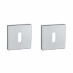 Mat Chrome sleutelplaatjes uit de Premium collectie van Aprile. Deze sleutelrozetten staan op vierkant rozetten van 52×52 mm met een dikte van 7 mm en zijn voorzien van nokken waardoor ze beter blijven zitten. Deze Aprile sleutelrozetten zijn geschikt voor binnendeuren met een deurdikte tot 44 mm en worden per paar geleverd inclusief metalen onderrozetten en bevestigingsmaterialen. Voor bredere deuren kunnen we langere bevestigingsmaterialen meeleveren.