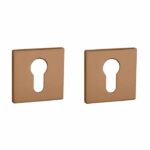 Mat koperen cilinderplaatjes uit de Prestige collectie van Aprile. Deze mat koperen cilinderrozetten staan op vierkant rozetten van 52×52 mm met een dikte van 5 mm en zijn voorzien van nokken waardoor ze beter blijven zitten. De eigentijdse extra dunne rozetten zorgen voor een strakke uitstraling. Deze Aprile cilinderrozetten zijn geschikt voor binnendeuren met een deurdikte tot 44 mm en worden per paar geleverd inclusief kunststof onderrozetten en bevestigingsmaterialen. Voor bredere deuren kunnen we langere bevestigingsmaterialen meeleveren.