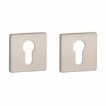 Cilinderplaatjes uit de Prestige collectie van Aprile in mat nikkel. Deze mat nikkelen cilinderrozetten staan op vierkant rozetten van 52×52 mm met een dikte van 5 mm en zijn voorzien van nokken waardoor ze beter blijven zitten. De eigentijdse extra dunne rozetten zorgen voor een strakke uitstraling. Deze Aprile cilinderrozetten zijn geschikt voor binnendeuren met een deurdikte tot 44 mm en worden per paar geleverd inclusief kunststof onderrozetten en bevestigingsmaterialen. Voor bredere deuren kunnen we langere bevestigingsmaterialen meeleveren.
