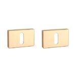 Let op: Bij de rechthoekige sleutelplaatjes heb je zowel goud gepolijst (voor de rechthoekige modellen uit de Prestige collectie) alsook goud gepolijst PVD (voor de rechthoekige modellen uit de Premium collectie). Deze gepolijst gouden PVD sleutelplaatjes horen bij de deurklinken Brisa & Gladiola uit de Prestige collectie van Aprile. De rechthoekige sleutelrozetten van 50×33 mm hebben een dikte van 7 mm en zijn voorzien van nokken waardoor ze beter blijven zitten. Deze goud gepolijste PVD sleutelrozetten zijn geschikt voor binnendeuren met een deurdikte tot 44 mm en worden per paar geleverd inclusief metalen onderrozetten en bevestigingsmaterialen. Voor dikkere deuren kunnen we langere bevestigingsmaterialen meeleveren.