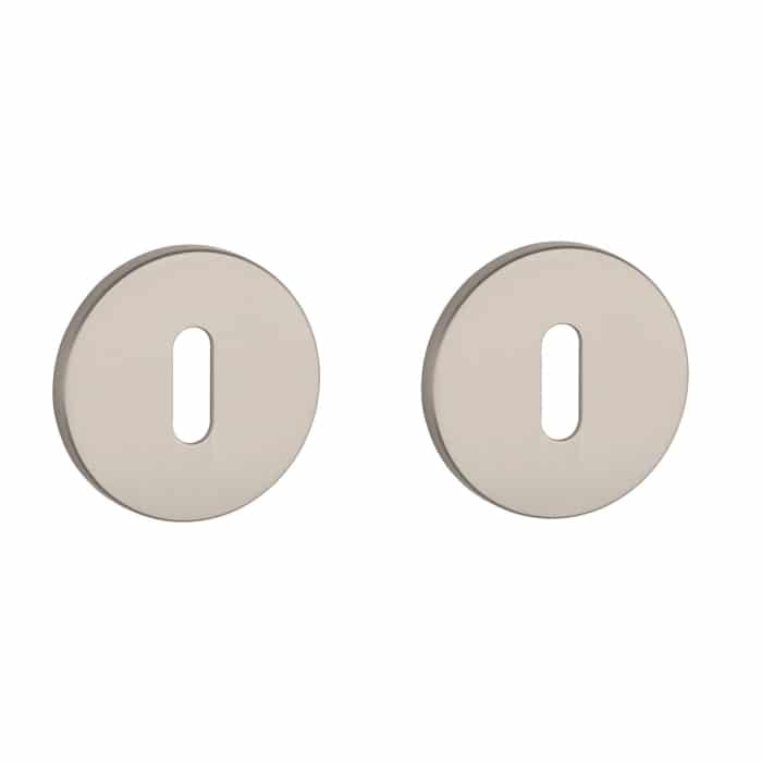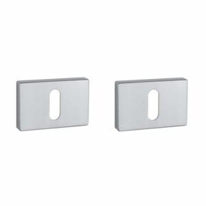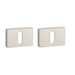 Deze nikkelen sleutelplaatjes horen bij de rechthoekige deurklinken uit de Prestige & Premium collectie van Aprile. Een mooie variant op rvs is deze nikkelen kleur. De rechthoekige sleutelrozetten van 50×33 mm hebben een dikte van 7 mm en zijn voorzien van nokken waardoor ze beter blijven zitten. Deze nikkelen sleutelrozetten zijn geschikt voor binnendeuren met een deurdikte tot 44 mm en worden per paar geleverd inclusief metalen onderrozetten en bevestigingsmaterialen. Voor dikkere deuren kunnen we langere bevestigingsmaterialen meeleveren.