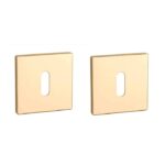 Goud gepolijste sleutelplaatjes uit de Prestige collectie van Aprile. Deze gouden sleutelrozetten staan op vierkant rozetten van 52×52 mm met een dikte van 5 mm en zijn voorzien van nokken waardoor ze beter blijven zitten. De eigentijdse extra dunne rozetten zorgen voor een strakke uitstraling. Deze Aprile sleutelrozetten zijn geschikt voor binnendeuren met een deurdikte tot 44 mm en worden per paar geleverd inclusief kunststof onderrozetten en bevestigingsmaterialen. Voor bredere deuren kunnen we langere bevestigingsmaterialen meeleveren.