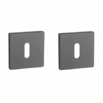Zwarte sleutelplaatjes uit de Prestige collectie van Aprile. Deze zwarte sleutelrozetten staan op vierkant rozetten van 52×52 mm met een dikte van 5 mm en zijn voorzien van nokken waardoor ze beter blijven zitten. De eigentijdse extra dunne rozetten zorgen voor een strakke uitstraling. Deze Aprile sleutelrozetten zijn geschikt voor binnendeuren met een deurdikte tot 44 mm en worden per paar geleverd inclusief kunststof onderrozetten en bevestigingsmaterialen. Voor bredere deuren kunnen we langere bevestigingsmaterialen meeleveren.