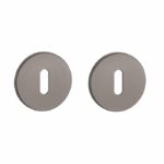 Sleutelplaatjes uit de Prestige collectie van Aprile in grafiet kleur. Deze sleutelrozetten staan op ronde rozetten van Ø52 mm met een dikte van slechts 5 mm en zijn voorzien van nokken waardoor ze beter blijven zitten. De eigentijdse extra dunne rozetten zorgen voor een strakke trendy uitstraling. Deze Aprile sleutelrozetten zijn geschikt voor binnendeuren met een deurdikte tot 44 mm en worden per paar geleverd inclusief kunststof onderrozetten en bevestigingsmaterialen. Voor bredere deuren kunnen we langere bevestigingsmaterialen meeleveren.