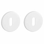 Witte sleutelplaatjes uit de Prestige collectie van Aprile. Deze sleutelrozetten staan op ronde rozetten van Ø52 mm met een dikte van slechts 5 mm en zijn voorzien van nokken waardoor ze beter blijven zitten. De extra dunne rozetten zorgen voor een strakke trendy uitstraling. Deze witte Aprile sleutelrozetten zijn geschikt voor binnendeuren met een deurdikte tot 44 mm en worden per paar geleverd inclusief kunststof onderrozetten en bevestigingsmaterialen. Voor bredere deuren kunnen we langere bevestigingsmaterialen meeleveren.