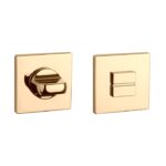 Goud gepolijst WC garnituur uit de Prestige collectie van Aprile. Dit goud gepolijst WC garnituur staat op vierkante rozetten van 52×52 mm met een dikte van 5 mm die zijn voorzien van nokken waardoor ze beter blijven zitten. De extra dunne rozetten zorgen voor een strakke eigentijdse uitstraling.