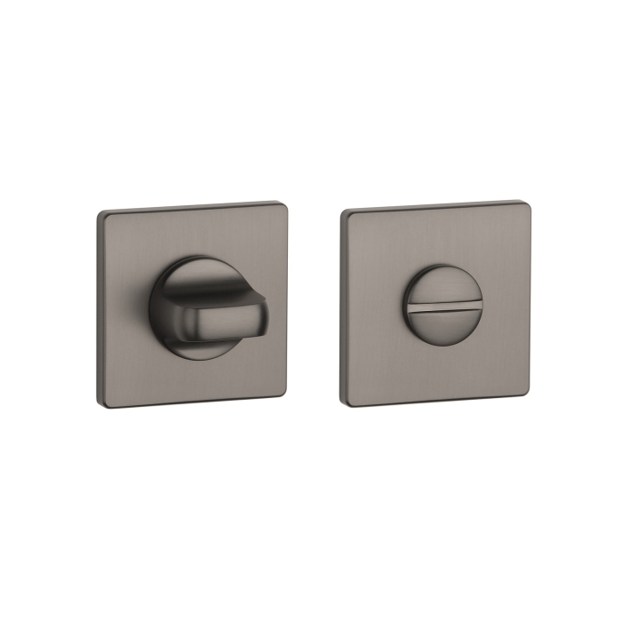 WC garnituur uit de Prestige collectie van Aprile in grafiet kleur. Dit grafiet kleurig WC garnituur staat op vierkante rozetten van 52×52 mm met een dikte van 5 mm die zijn voorzien van nokken waardoor ze beter blijven zitten. De extra dunne rozetten zorgen voor een strakke eigentijdse uitstraling.