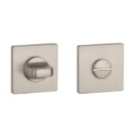 WC garnituur uit de Prestige collectie van Aprile in mat nikkel. Dit mat nikkelen WC garnituur staat op vierkante rozetten van 52×52 mm met een dikte van 5 mm die zijn voorzien van nokken waardoor ze beter blijven zitten. De extra dunne rozetten zorgen voor een strakke eigentijdse uitstraling.