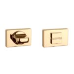 Dit goud gepolijste WC garnituur hoort bij de rechthoekige deurklinken uit de Premium collectie van Aprile. (Ismena RT, Pina RT, Yuka RT). Het rechthoekige WC-garnituur van 50×33 mm heeft een dikte van 7 mm en zijn voorzien van nokken waardoor ze beter blijven zitten.