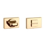 Dit goud gepolijste WC garnituur met PVD coating hoort bij de rechthoekige deurklinken uit de Prestige collectie van Aprile. (Brisa & Gladiola). Het rechthoekige WC-garnituur van 50×33 mm heeft een dikte van 7 mm en zijn voorzien van nokken waardoor ze beter blijven zitten.