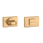 Dit mat gouden WC garnituur hoort bij de rechthoekige deurklinken uit de Premium collectie van Aprile. (Ismena RT, Pina RT, Yuka RT). Het rechthoekige WC-garnituur van 50×33 mm heeft een dikte van 7 mm en zijn voorzien van nokken waardoor ze beter blijven zitten.