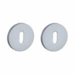 Mat Chrome sleutelplaatjes uit de Comfort collectie van Aprile. Deze sleutelrozetten staan op ronde rozetten van Ø53 mm met een dikte van 7 mm en zijn voorzien van nokken waardoor ze beter blijven zitten. Deze Aprile sleutelrozetten zijn geschikt voor binnendeuren met een deurdikte tot 44 mm en worden per paar geleverd inclusief metalen onderrozetten en bevestigingsmaterialen. Voor bredere deuren kunnen we langere bevestigingsmaterialen meeleveren.