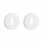 Witte sleutelplaatjes uit de Comfort collectie van Aprile. Deze sleutelrozetten staan op ronde rozetten van Ø53 mm met een dikte van 7 mm en zijn voorzien van nokken waardoor ze beter blijven zitten. Deze Aprile sleutelrozetten zijn geschikt voor binnendeuren met een deurdikte tot 44 mm en worden per paar geleverd inclusief metalen onderrozetten en bevestigingsmaterialen. Voor bredere deuren kunnen we langere bevestigingsmaterialen meeleveren.
