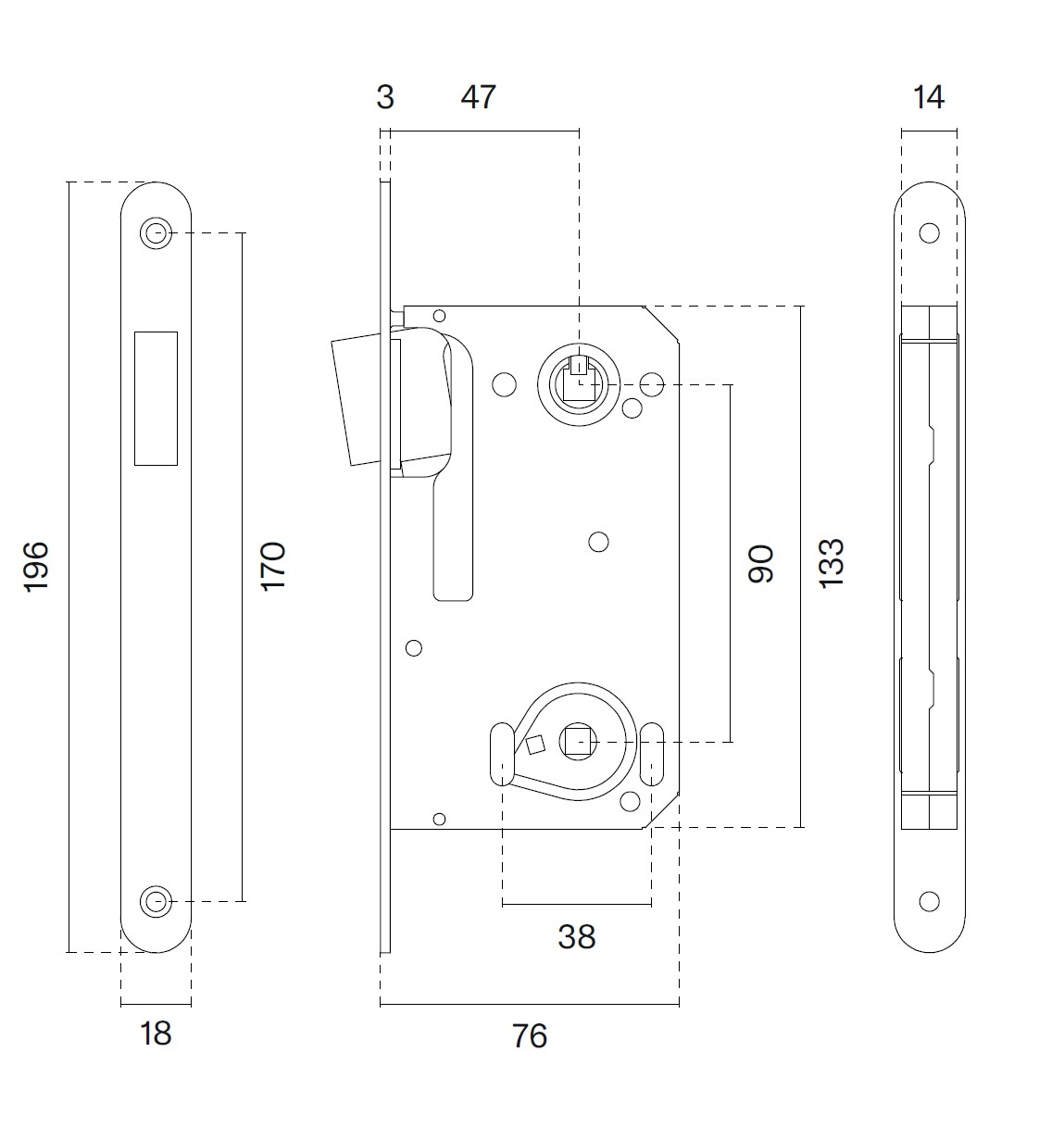 Het magneetslot 2869 is de uitvoering voor een WC garnituur en kan compleet gemaakt worden met de bijpassende sluitkom 2870. Het mat witte magneetslot met afgeronde hoeken is 196 mm hoog en 18 mm breed. De asmaat is 90 mm en de doornmaat 50 mm.